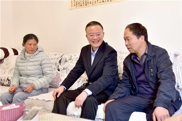 “给你们拜个早年,身体怎么样?生活上还有什么困难?……”每到一处,胡均都与慰问对象及其家人亲切交谈、嘘寒问暖,面对面拉“家常”、肩并肩交“心底”、心贴心访“疾苦”,仔细询问身体状况、子女上学、医疗保障和收入等情况,感谢他们长期以来为云锡改革发展付出的辛劳,并简要介绍云锡改革发展情况,叮嘱离休老同志保重身体,激励困难家庭增强战胜困难的信心和勇气,在共同富裕的道路上把生活过得更幸福更美满。
