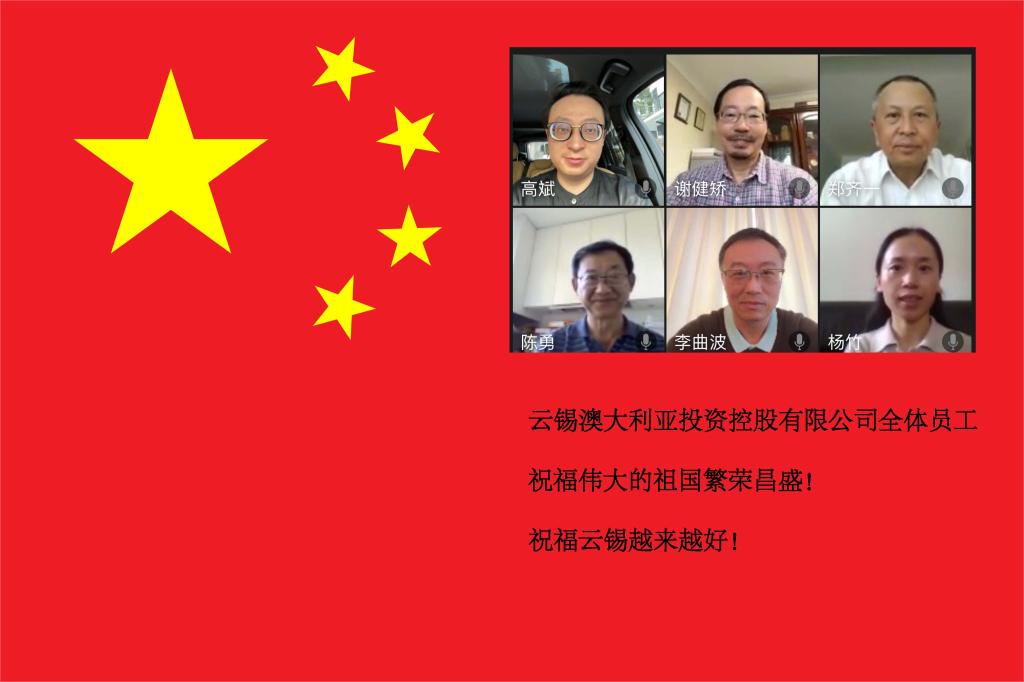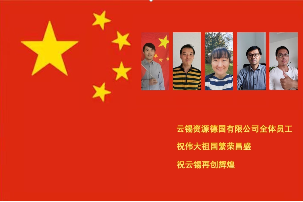 美中国,云中锡,身在国外,心系祖国。美国公司全体员工祝愿亲爱的祖国繁荣强大!愿云锡未来创新不止,再创辉煌!(李 恒)