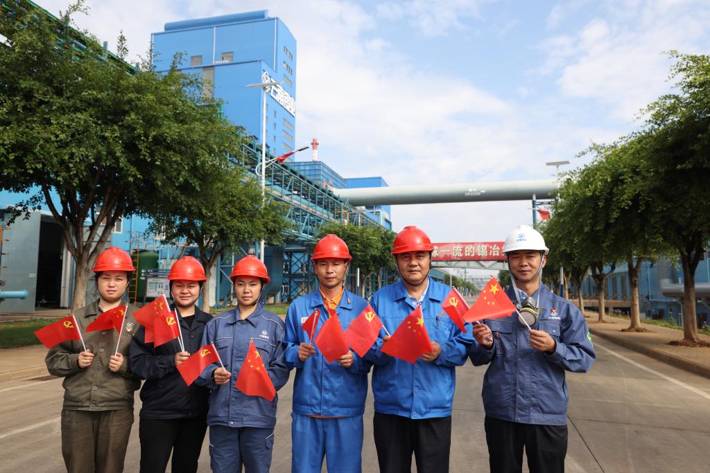 生产车间:长在红旗下,我们是幸福的一代,愿祖国繁荣昌盛、天蓝水清,我们为您自豪,为您骄傲。祝您生日快乐!祝愿百年云锡再续辉煌!