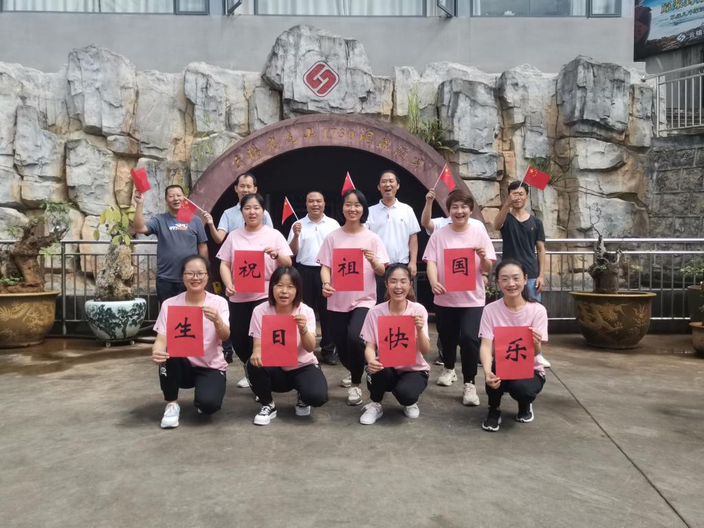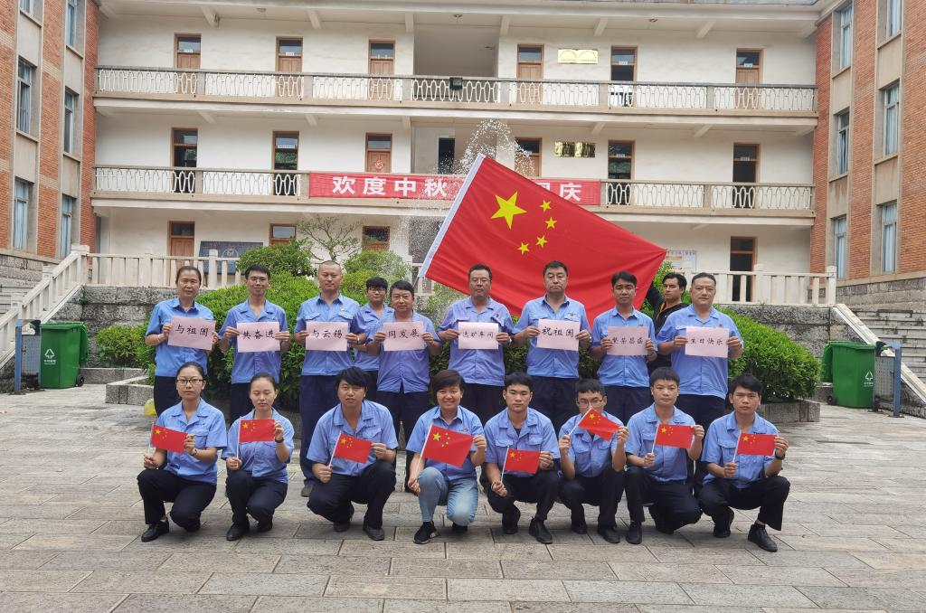 选矿车间:红旗飘飘迎十一,传递云锡儿女情。祝福母亲,生日快乐!祝愿祖国,繁荣昌盛!