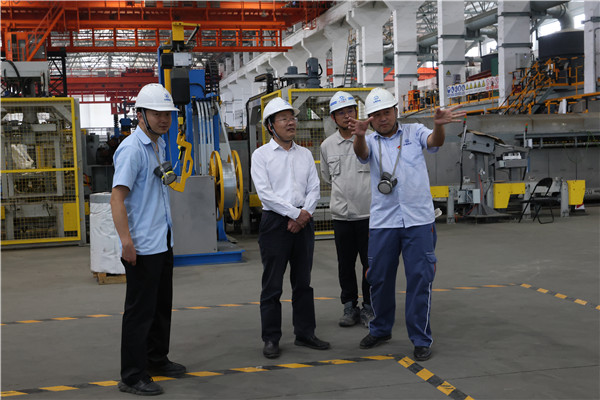 宋兴诚先后深入熔炼车间顶吹炉系统,精炼车间炉前精炼、火法精炼系统,炼渣车间烟化炉系统等作业现场,详细了解了安全环保、工艺技术创新、系统优化等方面情况。