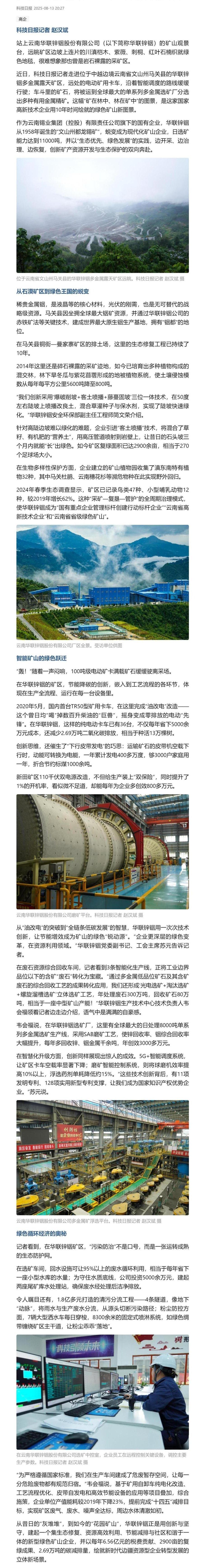 科技日报:从“灰堆堆”到“花园矿”——绿色矿山的“铟都”样本